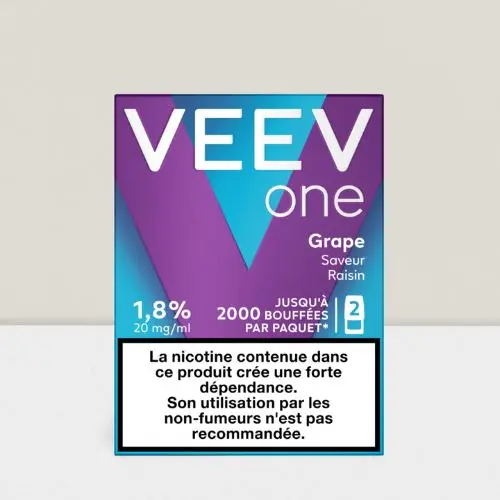 Les recharges VEEV One Raisin, une expérience fruitée intense et raffinée. Chaque cartouche VEEV One contient 2 ml d’e-liquide haut de gamme, offrant jusqu’à 2000 bouffées par boîte. Disponibles en 9 mg/ml et 20 mg/ml, ces capsules offrent une vapeur stable, douce et savoureuse. Compatibles uniquement avec la cigarette électronique VEEV One, elles garantissent une vape propre, simple et sans fuite. Alliez plaisir et praticité avec cette saveur raisin ronde et généreuse, signée VEEV.